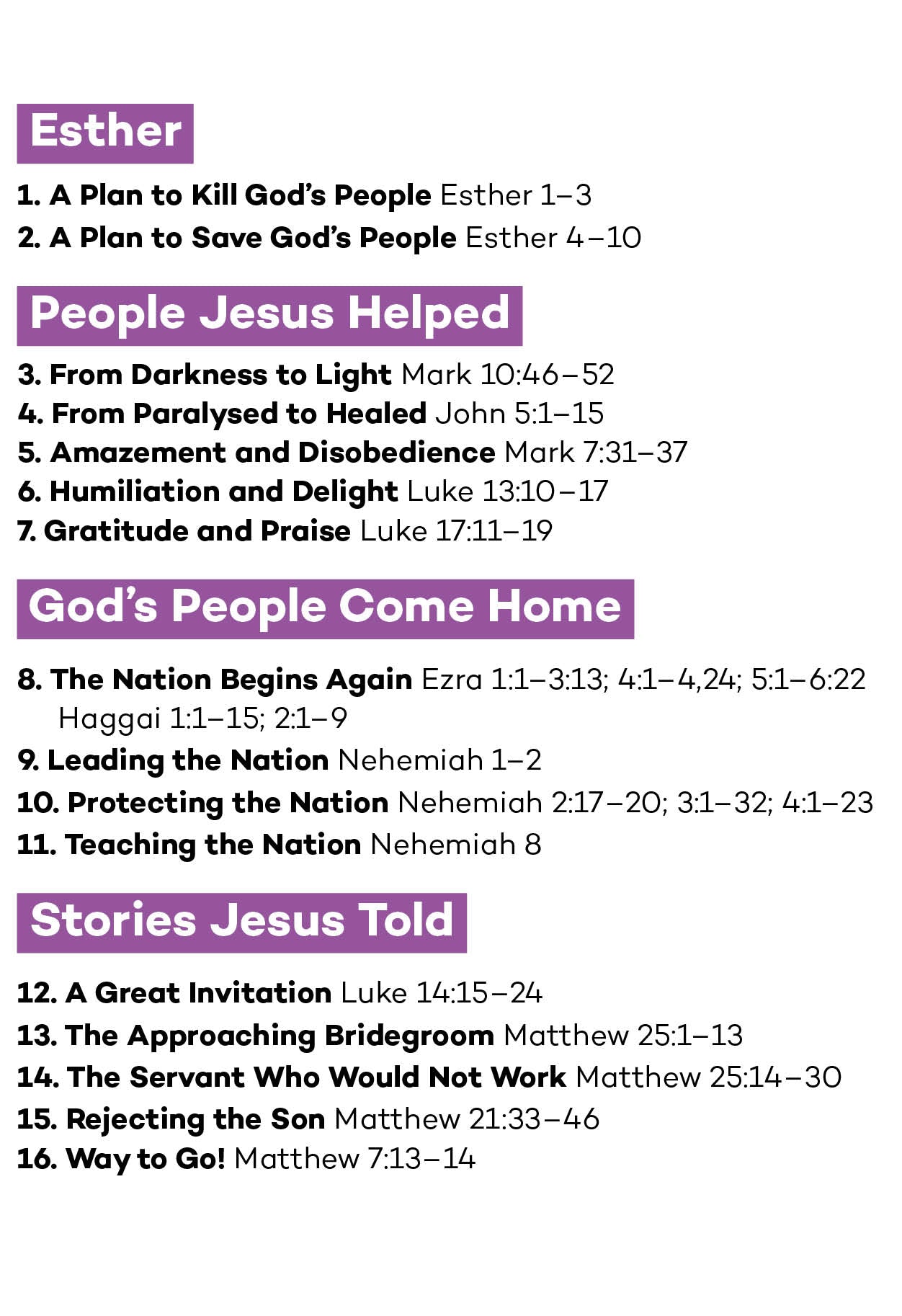 For teaching those in the early years of secondary school. Each book contains the material to teach 16 Bible lessons.