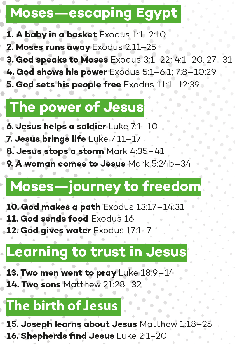 For teaching pre-schoolers. Each book contains the material to teach 16 Bible lessons.