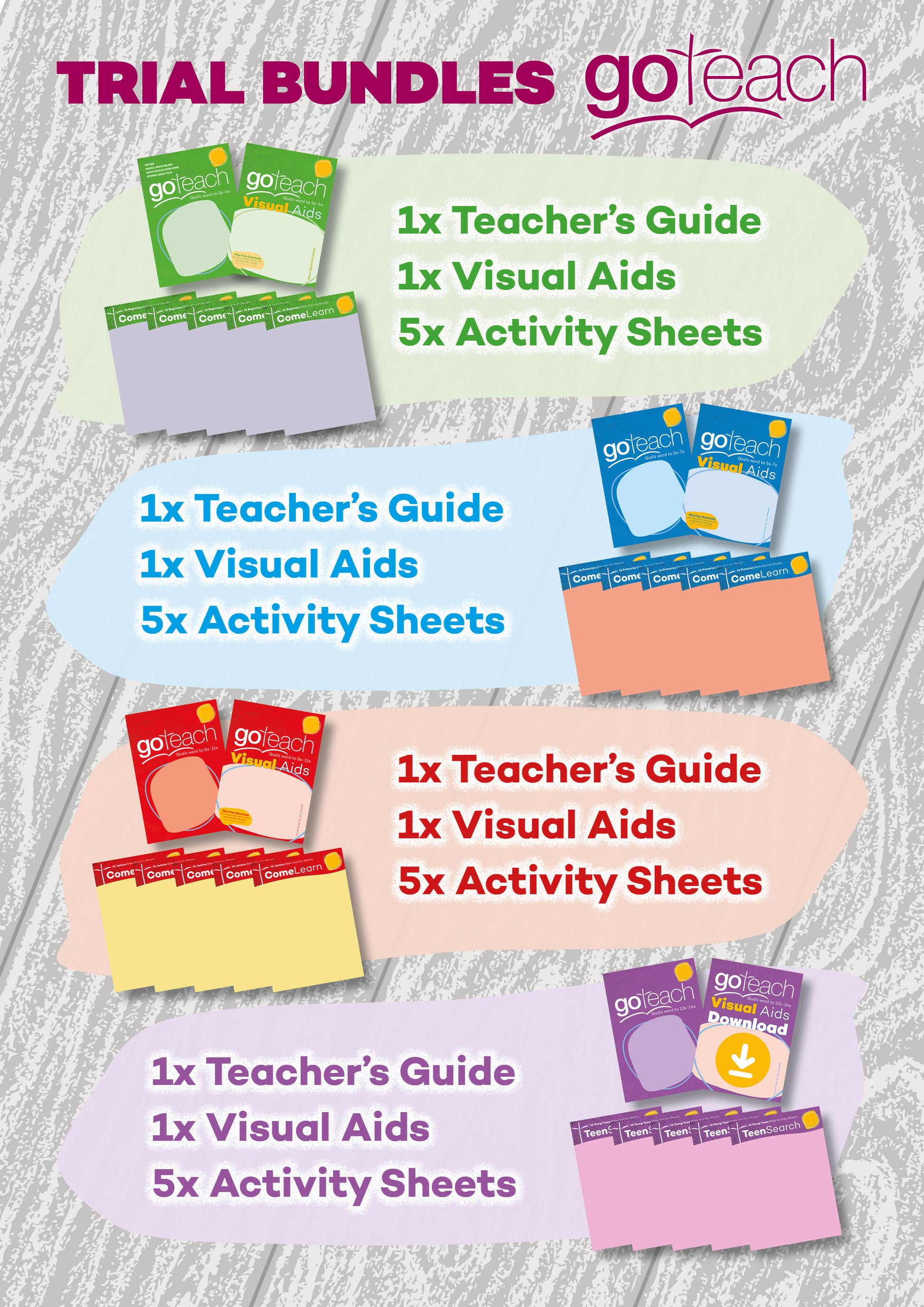 Each bundle will contain a Book from our 4-year syllabus, chosen by us, with accompanying resources to enable you to teach your class for 16 lessons.